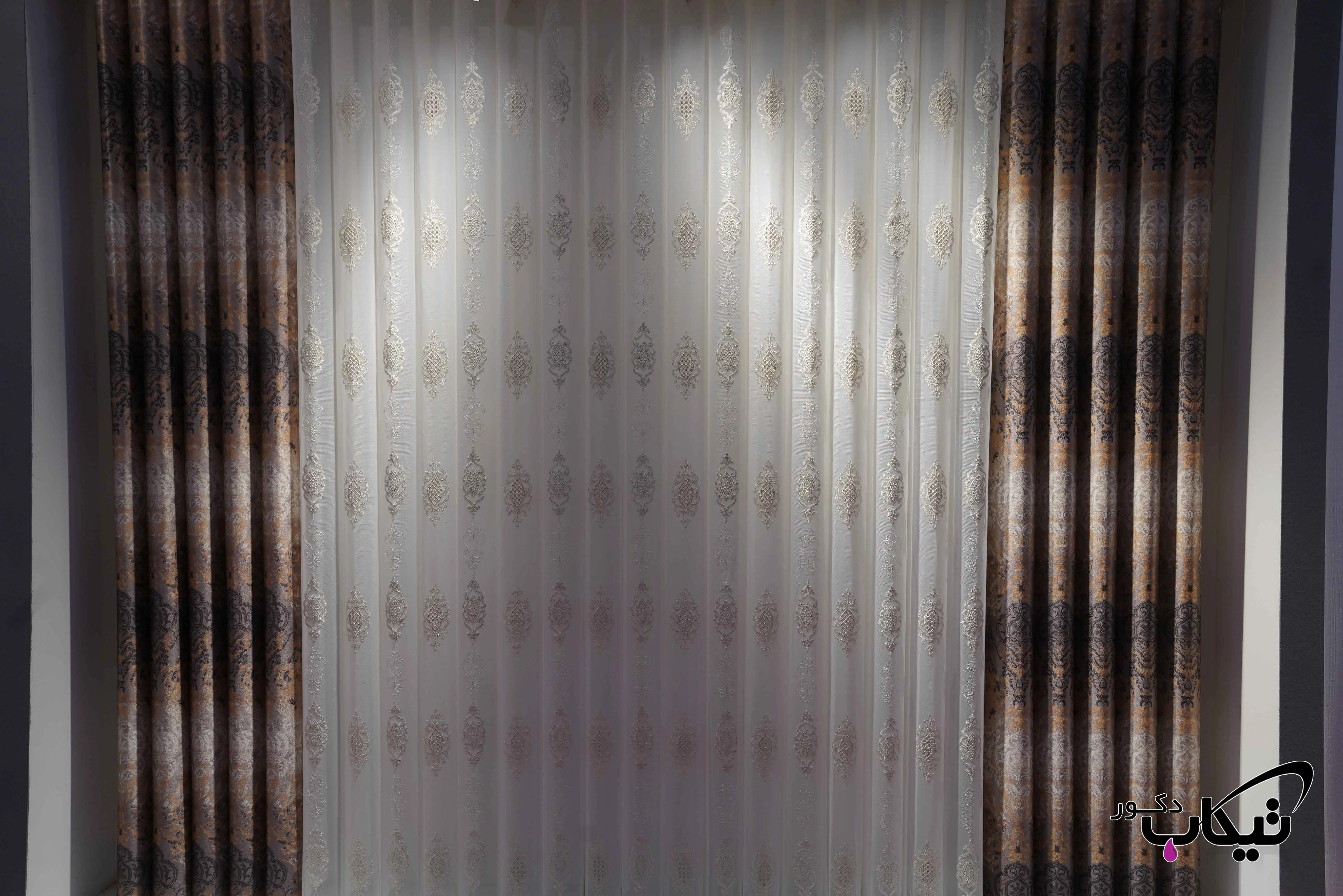 پرده کلاسیک با گلدوزی برجسته و طراحی مجلل